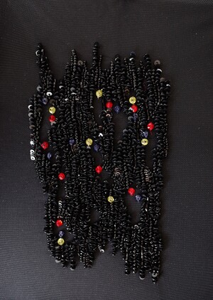 Embroidery archive from personal projects and past projects (from sample to final piece), developed with beads, threads, crystals, sequins, laser-cut elements and other special materials, by hand and machine embroidery